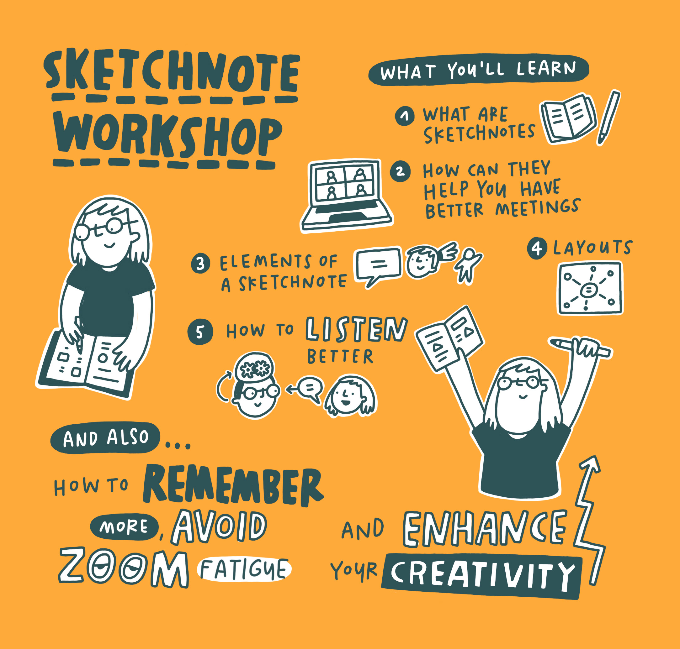 By the end of the workshop you will have all the tools you need to start drawing your own sketchnotes.